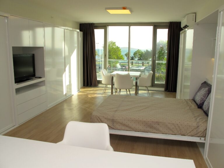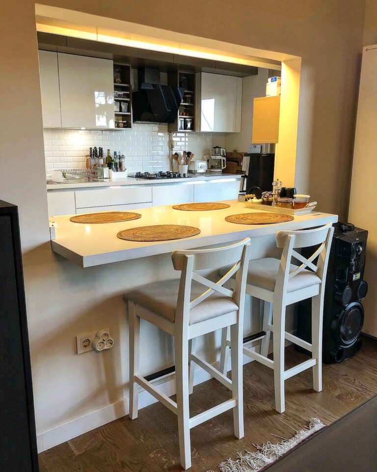 Beyaz mobilyaların tercih edildiği mekanda bol ışık ile birlikte aydınlık...
