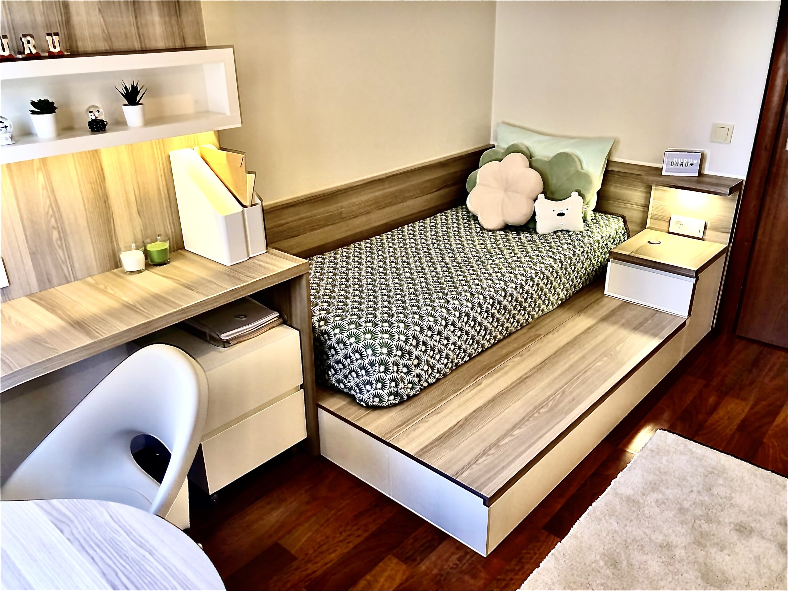 Klasik çizgilerden oluşan bu genç odamızda masif ahşap kullandık.