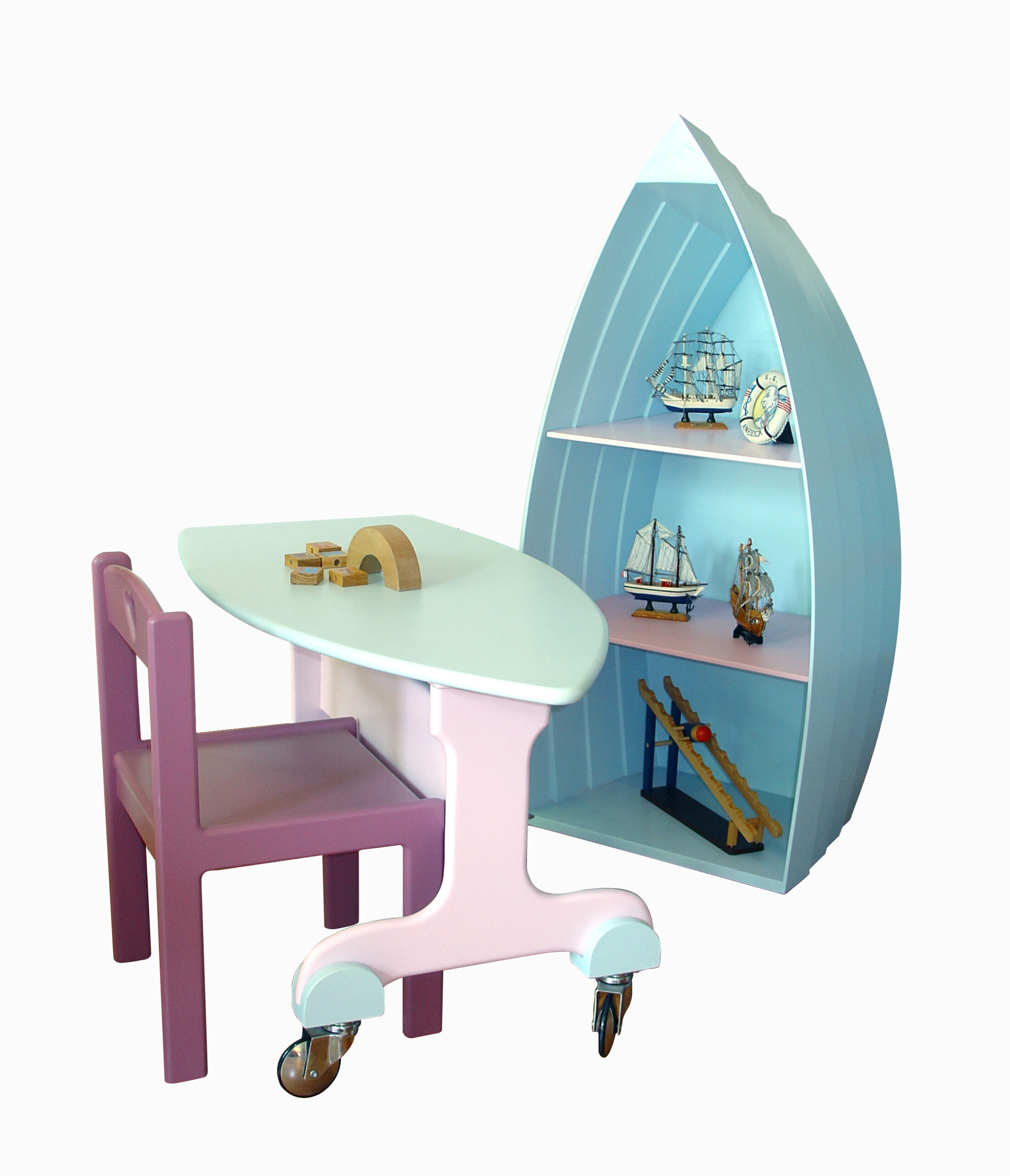 Yelkenli temalı beşik,daha sonra dolap ve masaya dönüşüyor.
