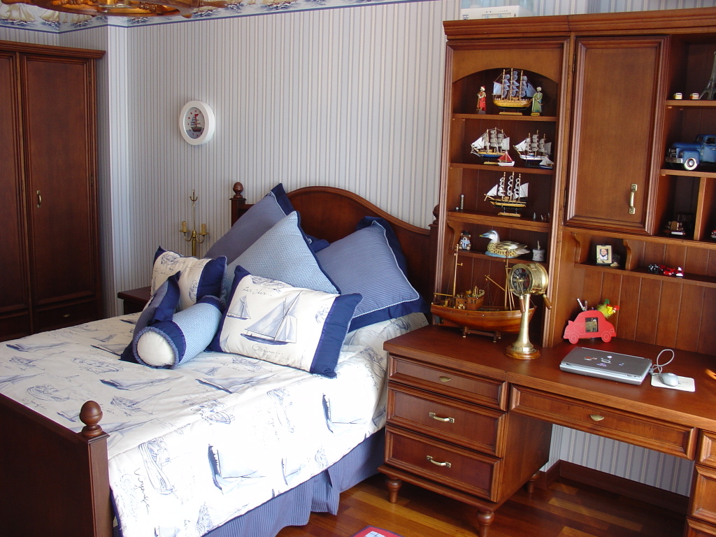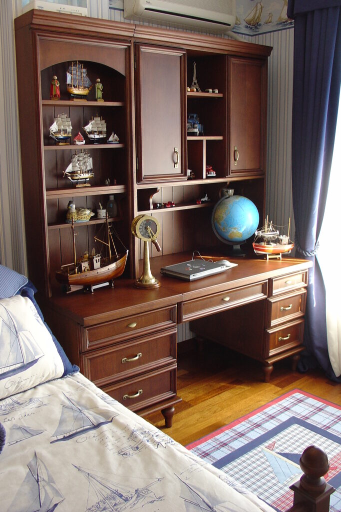 Klasik çizgilerden oluşan bu genç odamızda masif ahşap kullandık.